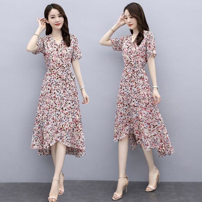 Đầm Dài Qua Gối Bằng Lụa Lạnh Họa Tiết Hoa Phong Cách Pháp Mùa Xuân Hè 2022 Mới