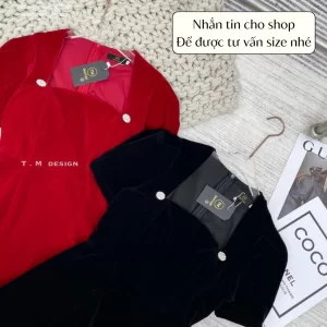 – Chất liệu: Vải tuyết nhung quảng châu, phối tay bồng sang chảnh dành cho các chị em