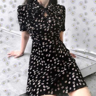 [THANH LÝ] Váy hoa cúc nơ cổ Polo có khóa eo – Cheap Moment Huyna