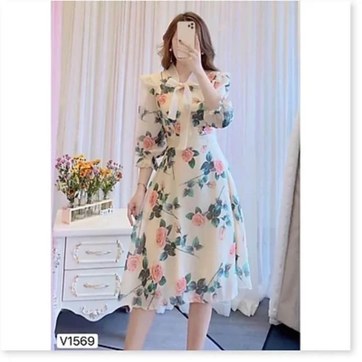 [ THỜI TRANG NỮ CAO CẤP ] ĐẦM HOA TIỂU THƯ CỘT NƠ SIÊU XINH CHẤT VẢI MỀM MỊN THOÁNG MÁT NEW 79 STORE