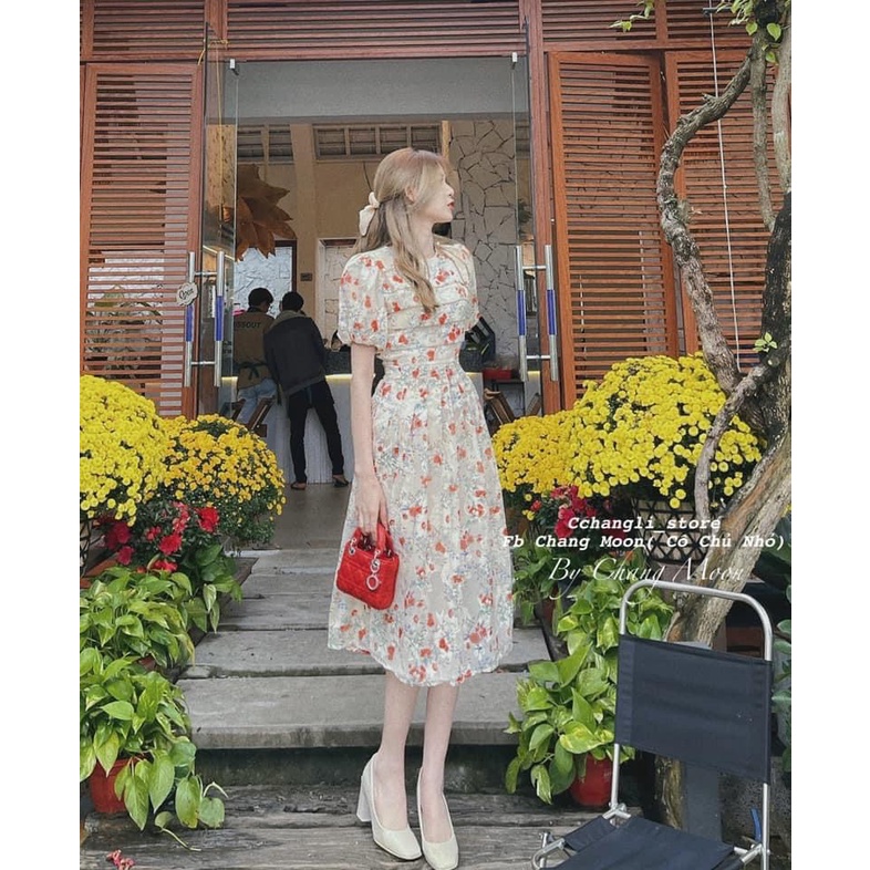 VÁY HOA LI TƠ NỔI TAY BỒNG