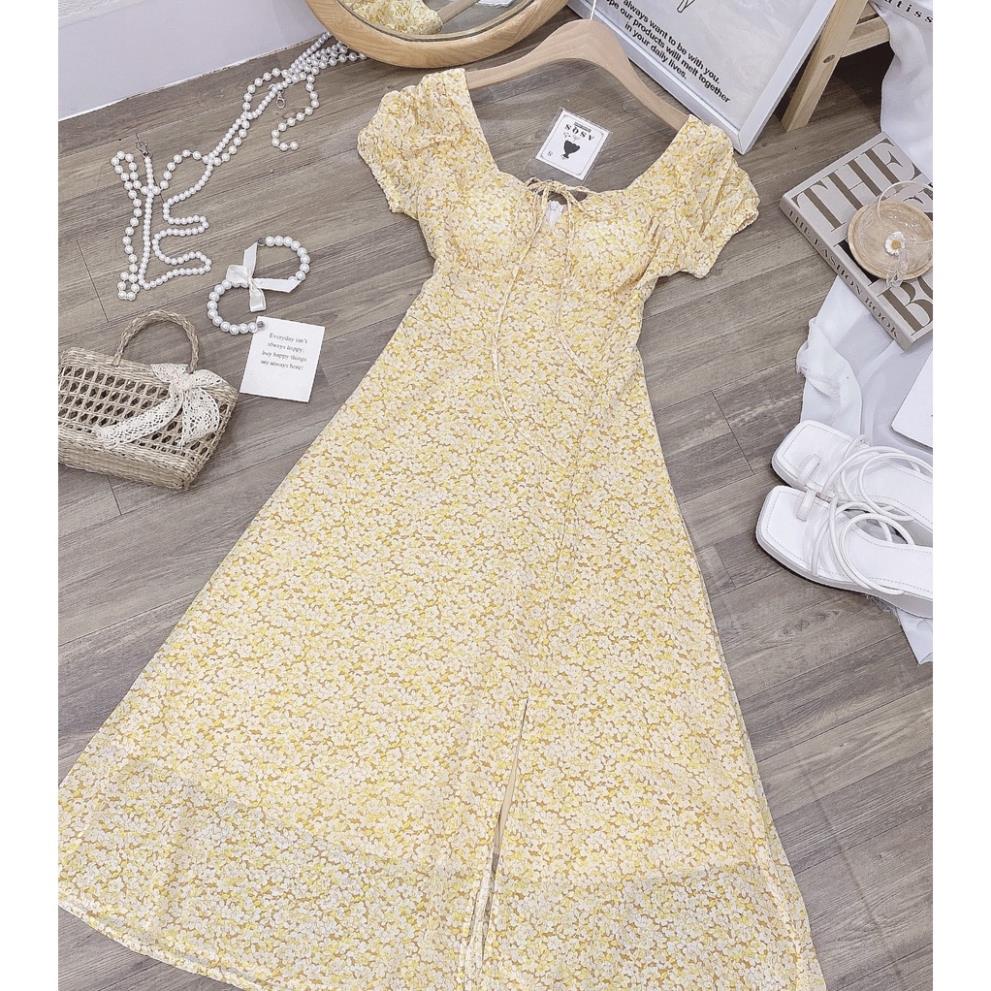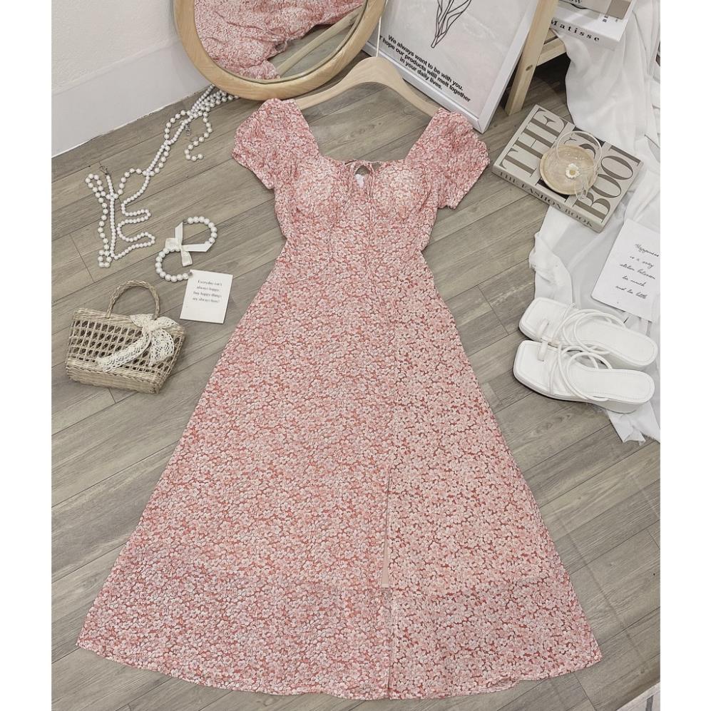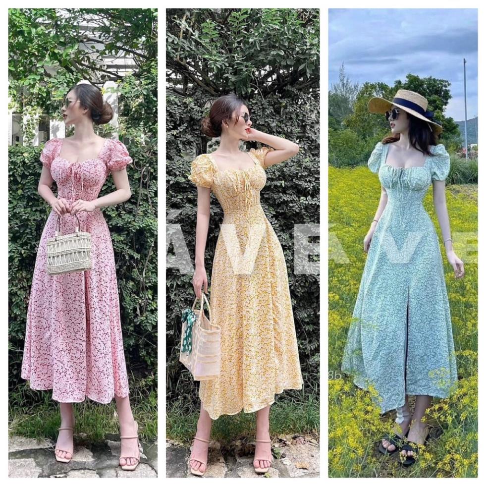 VÁY HOA MAXI XẺ ĐÙI CÚP NGỰC 3 MÀU