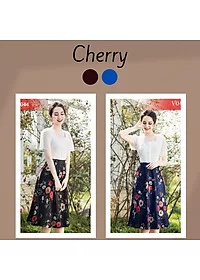 * BẢO QUẢN Váy hoa nhí công sở thiết kế liền thân chân váy dáng xòe, đầm nữ phối hoa đẹp Cherry Store V044