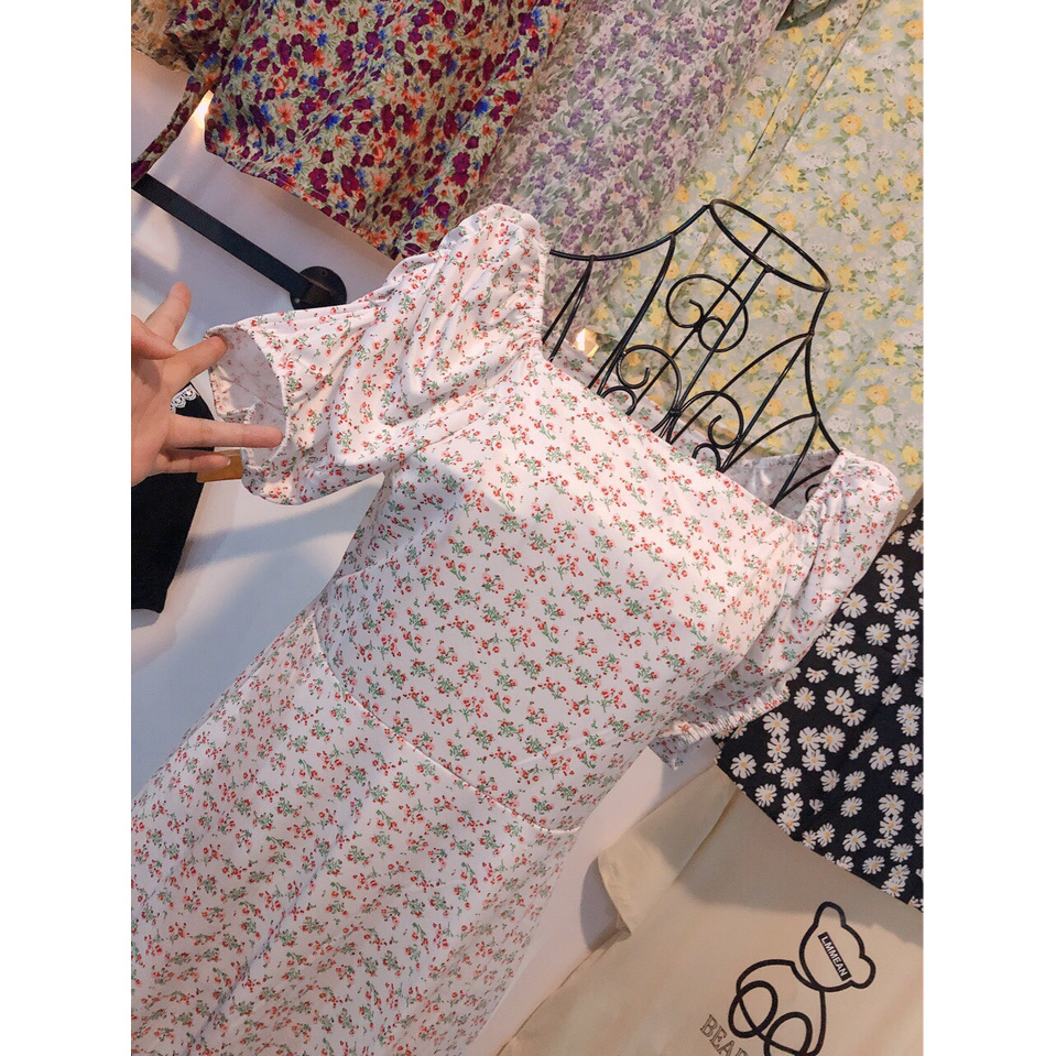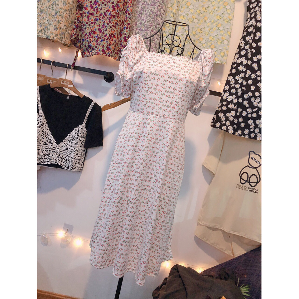 Váy Hoa Nhí Trắng ⚡️ẢNH THẬT⚡️Đầm Cotton Dáng Xinh Chào Hè