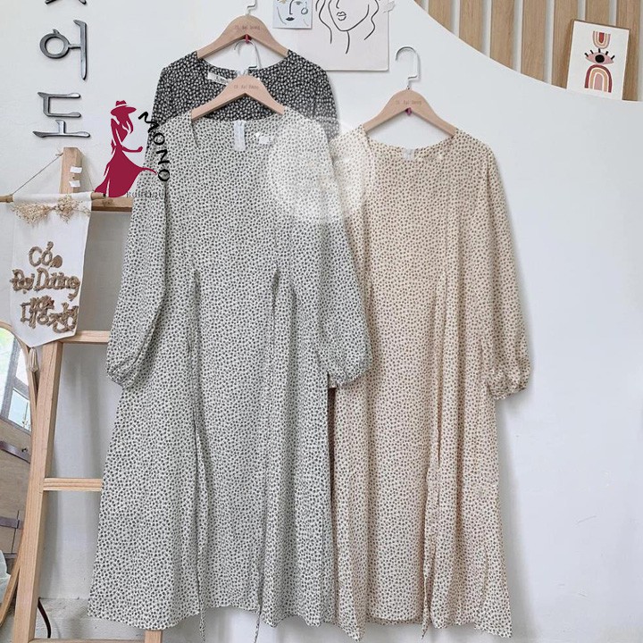 Váy Hoa Nhí Ulzzang Cổ Vuông Dáng Dài Thắt Nơ Eo – Mono Boutique