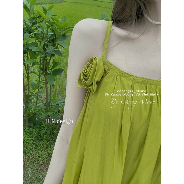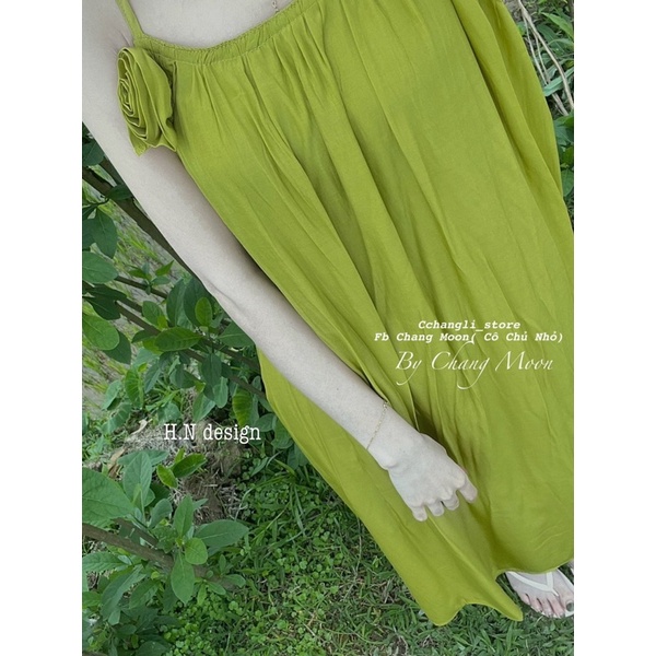 Váy Maxi 2 Dây Xanh Kèm Hoa Siêu Xinh Có Ảnh Thật Kèm Video