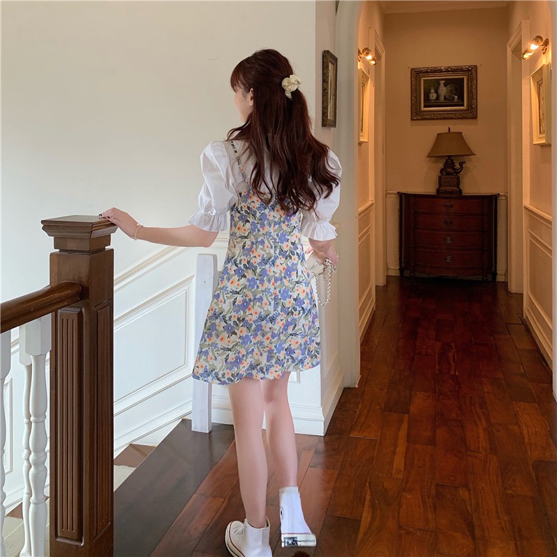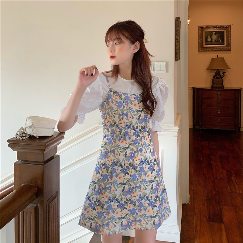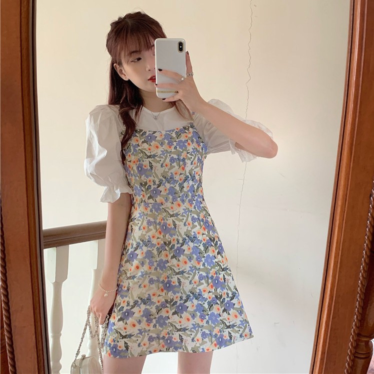 Xiaozhainv Áo tay phồng / Đầm Hoa Phong Cách Hàn Quốc Xinh Xắn Cho Nữ